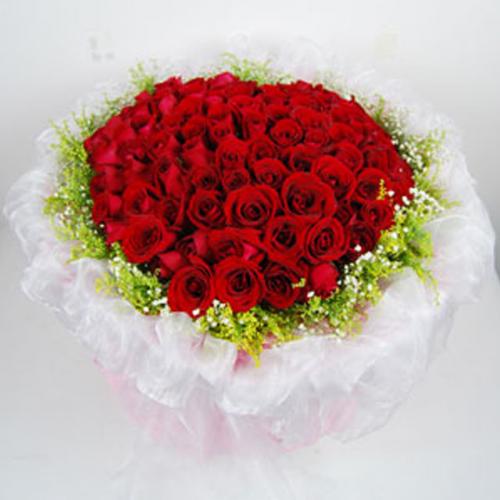 Hand Bouquet of 99 Stalks Red Roses with Baby's Breath