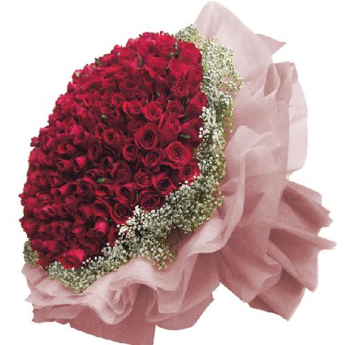 Hand Bouquet of 100 Stalks Red Roses with Baby's Breath
