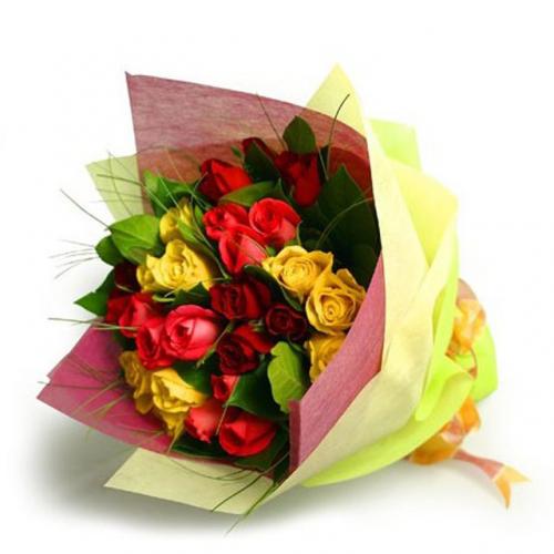 Hand Bouquet of 20 Stalks Mix Colour Roses with Foliage