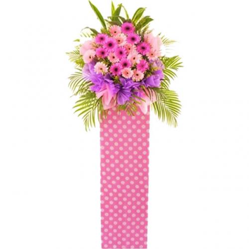 Grand Opening Stand with Mixed Gerberas,Mixed Fillers,Assorted Leaves and Decorative Flower Stand.