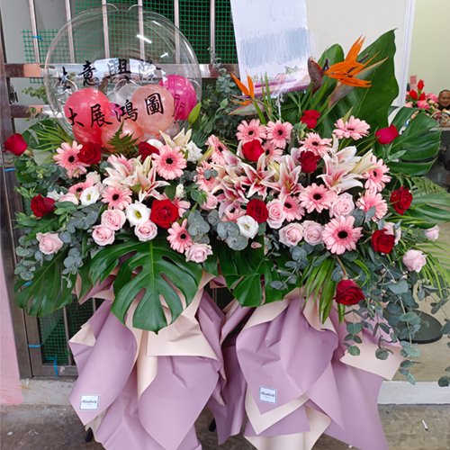 Balloon. Lilies. Roses. Gerberas. Eustoma. Eucalyptus.Decorative Stand.