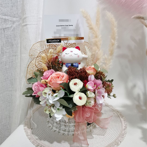 (Lucky Cat) Artificial Flower Deco. Flower Box.