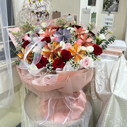 Cash RM 1000. Mix Colour Roses. Seasonal Flowers. Balloon.