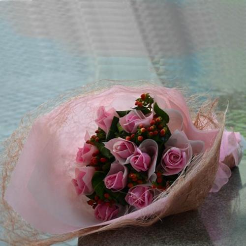 Sweet Bouquet of 12 Stalks Pink Roses with Assorted Flowers
