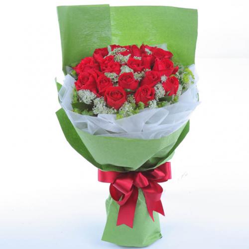 Hand Bouquet of 20 Stalks Red Roses with Baby's Breath