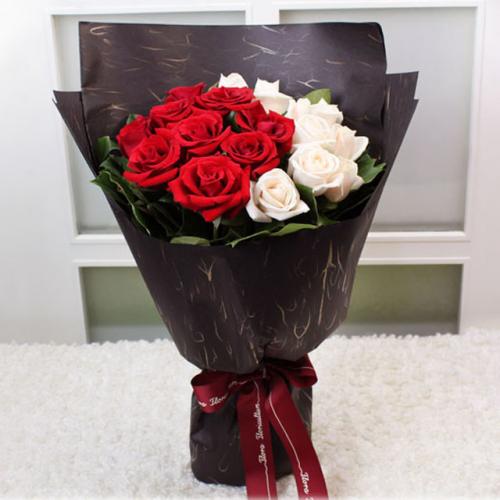 Hand Bouquet of 10 Stalks Red Roses Mix with 10 Stalks White Roses