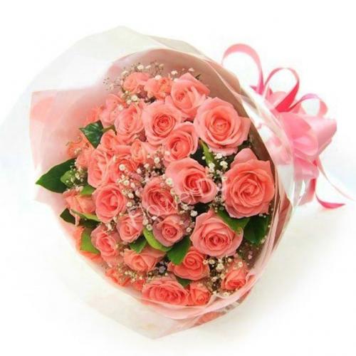 Hand Bouquet of 30 Stalks Pink Roses with filler/ Millian Star.