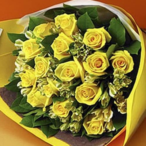 18 Stalks Yellow Roses, Seasonal Flowers, Fancy Wrapper & Ribbon