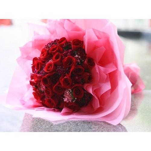 20 Stalks Red Roses with Seasonal Flowers with Fancy Wrapper