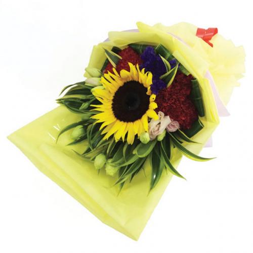 Hand Bouquet of Sunflowers, Red Roses with Assorted Fillers