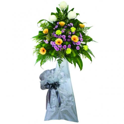 Chrysanthemum,Gerberas,Mixed Fillers,Assorted Leaves and Decorative Display Stand.